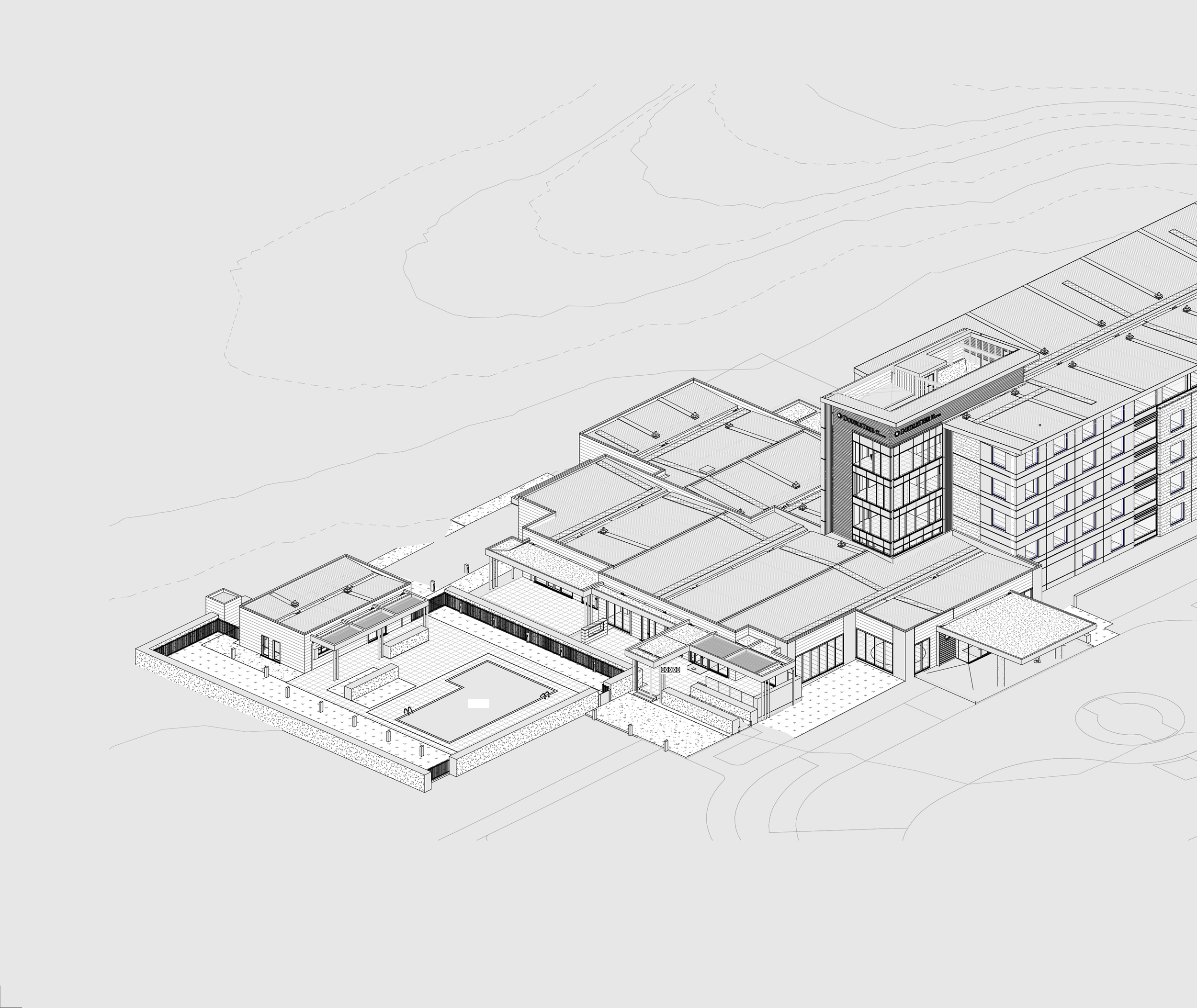 4 Storey building • Commercial Kitchen and Bar• Pool house • 129 Rooms